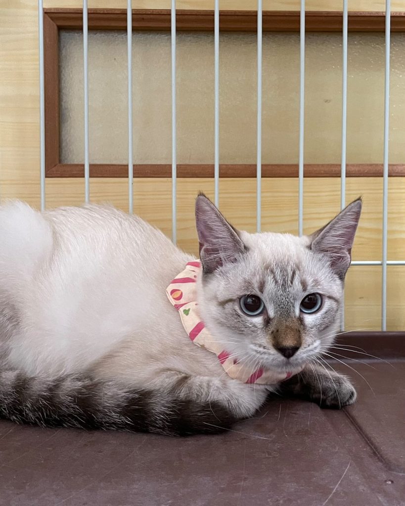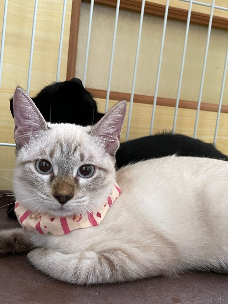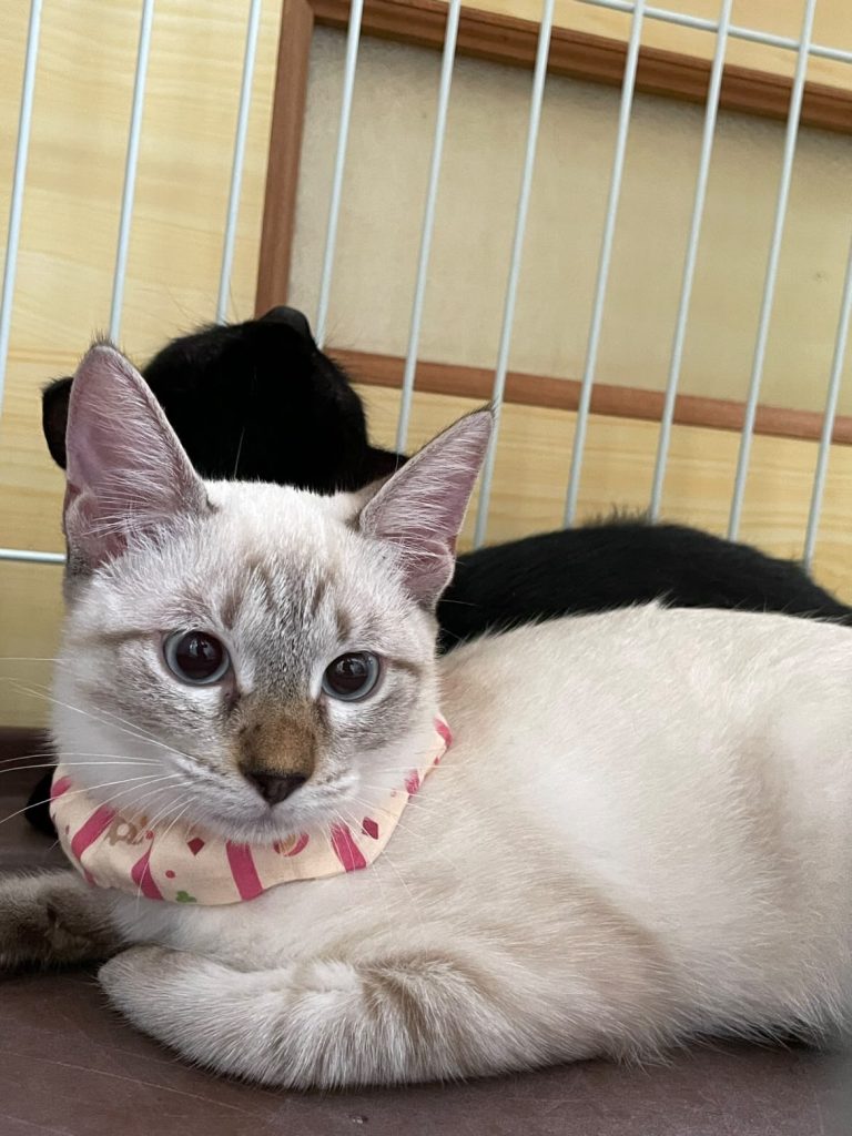 状態 | 健康診断 ☑ 検便 ☑ ノミダニ駆除 ☑ ワクチン接種 1回目 ☑・2回目 ☑(5種) 血液検査 保護時 ☑・2ヶ月後 ☑(エイズ白血病共に陰性) 不妊手術 □ その他:トイレ躾済 |
