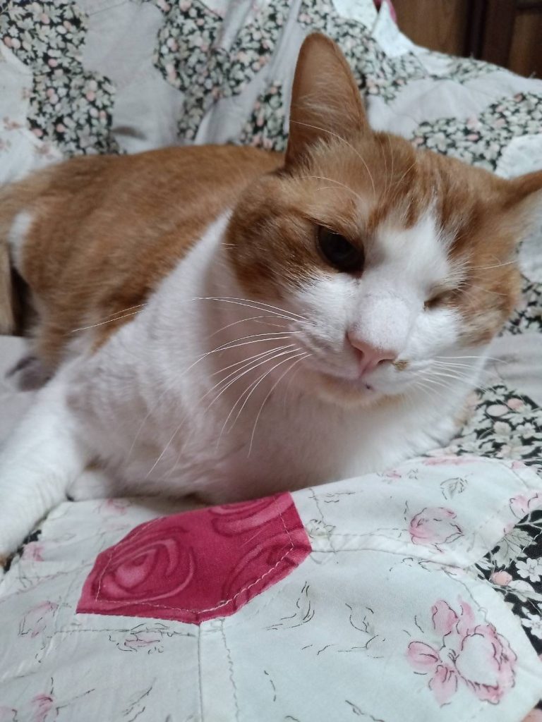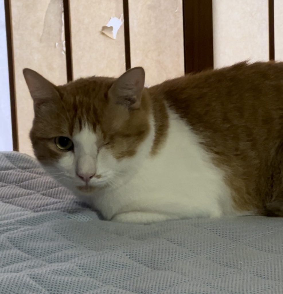 経緯 | 自宅の玄関先に現れ、片目を怪我していた為、保護しました。 病院で診察したところ、横隔膜ヘルニアになっており、横隔膜の手術、その後眼球摘出手術をしました。おそらく、交通事故により負傷したようです。今は手術をし健康そのものです。 片目はありませんが、健康状態に問題はありません。デカプリン・チャーちゃんは強運の持ち主で、交通事故に遭いながらも生還し、人にも愛される可愛い子です。 保護日:R5年5月5日 |