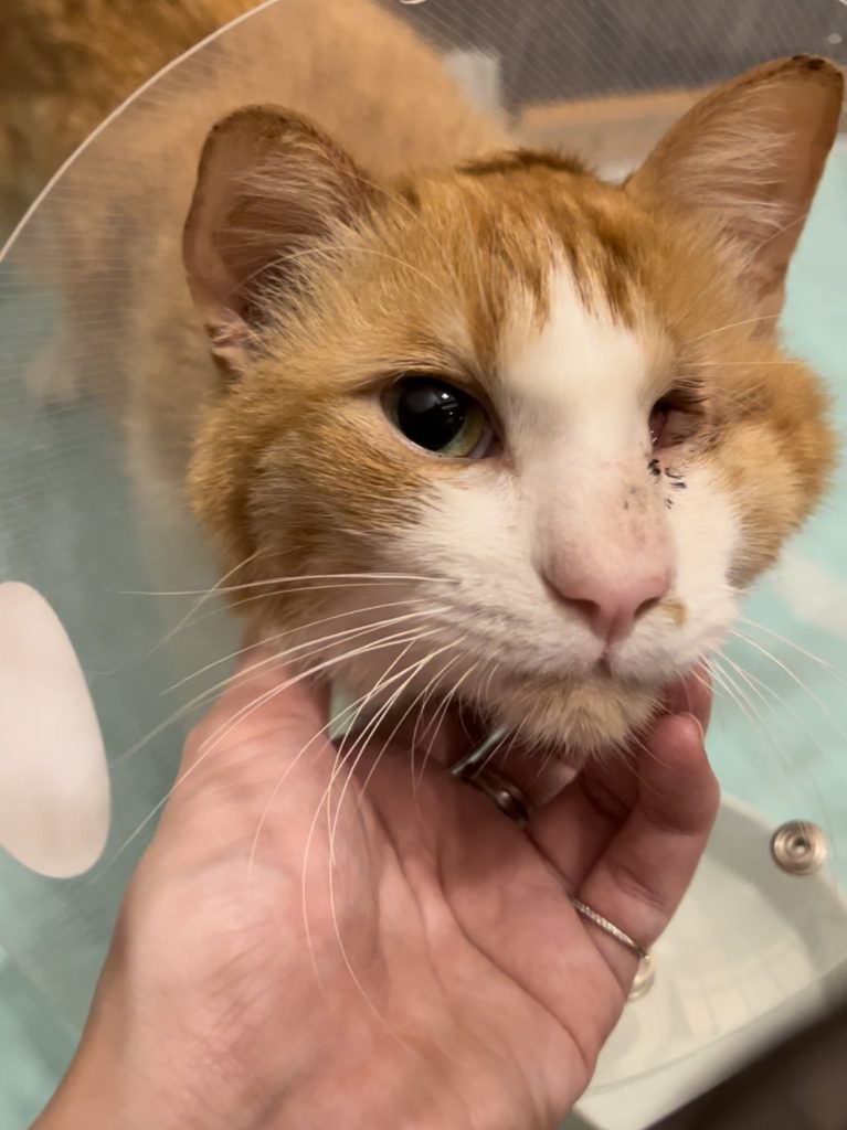 自宅玄関先に現れ片目を怪我していた為、保護しました。