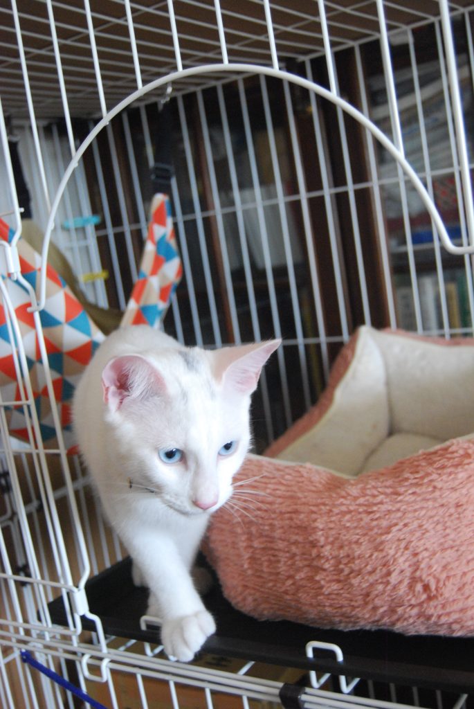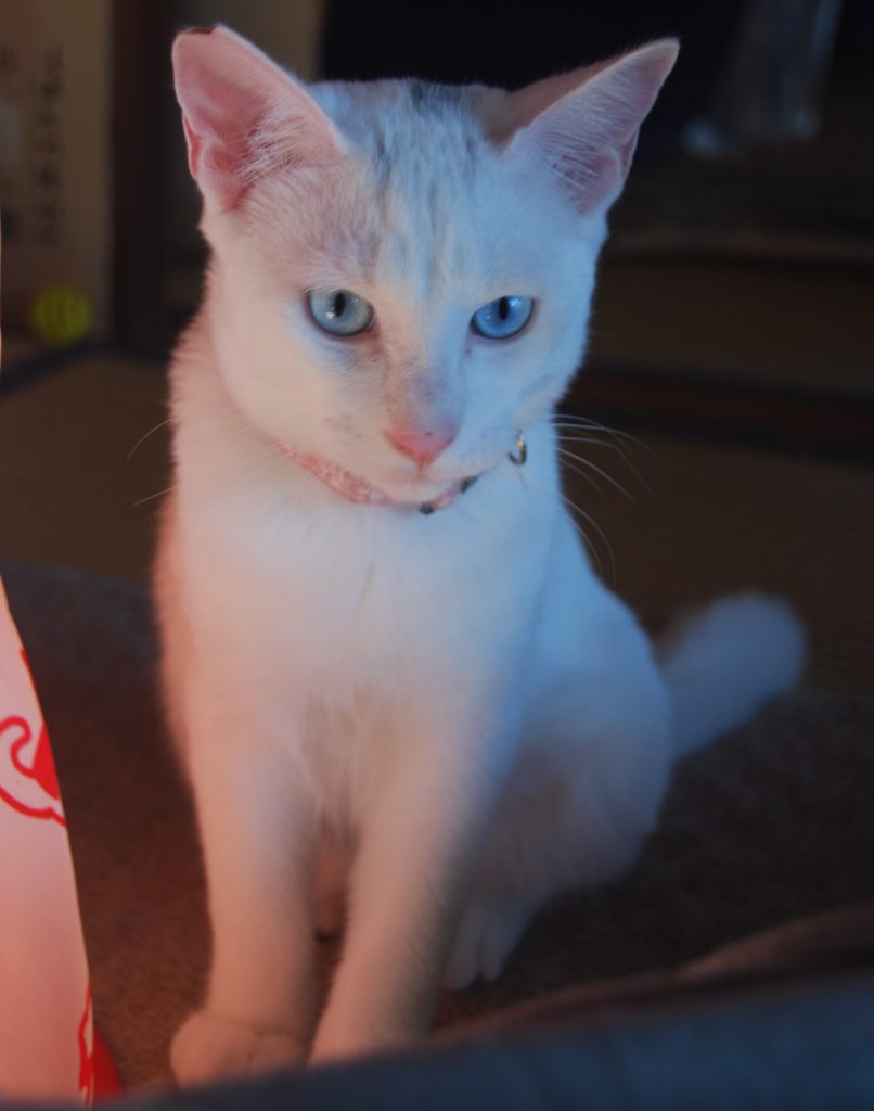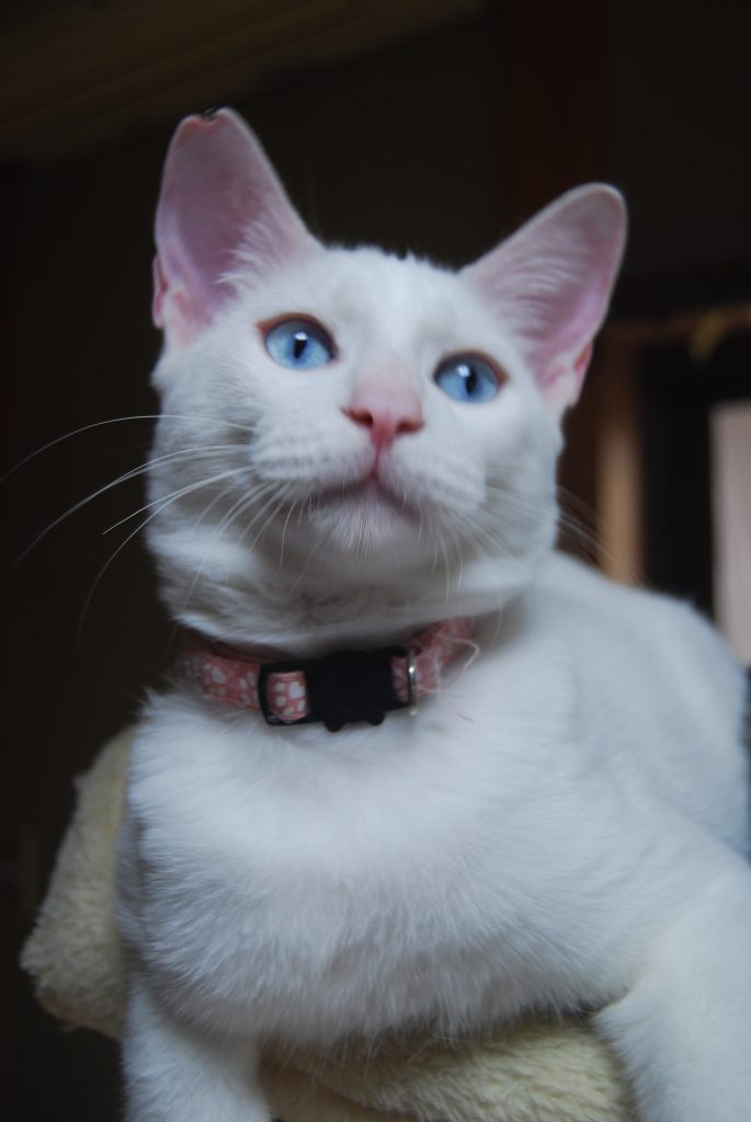 性格 | 白毛で頭に少し黒毛、ブルーな目をした男の子です。 性格はマイペースでのんびり屋さん、ソファーに座って名前を呼ぶと横に来てスリスリ甘えてきます。お膝で寝ます。 よく食べ、よく遊び、よく寝て大きくなりました。 ミカちゃん、ミクちゃん、ソラくんととても仲が良いです。追いかけたり、じゃれ合ったりして元気いっぱい遊んでいます。 ブルー♂、ソラ♂、ミカ♀、ミク♀は兄妹です。 普段の様子をご覧ください→(インスタグラム) |