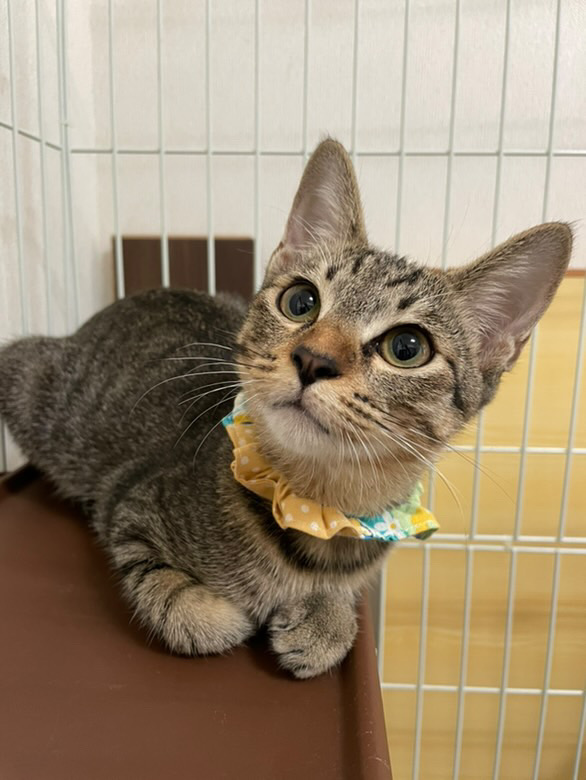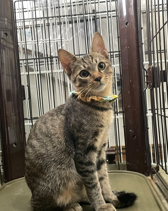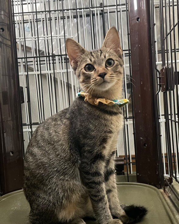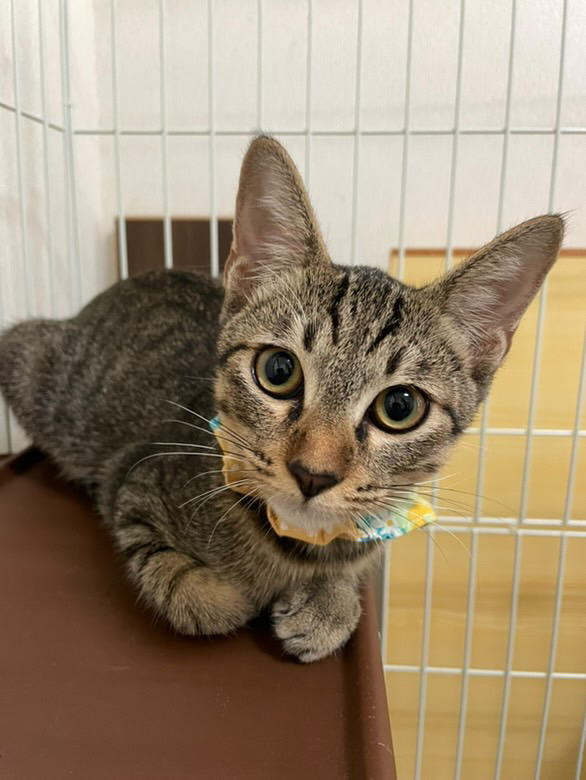 経緯 | 物置小屋に野良猫が子猫を産みました。母猫は不妊手術をしてリリース。子猫の里親探しをすることにしました。 保護日:R7.6月30日 |
