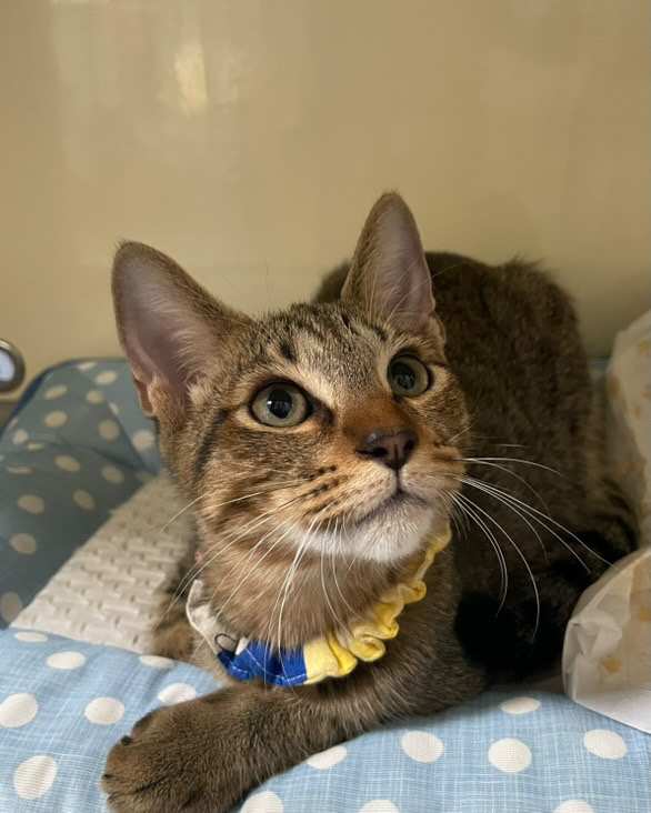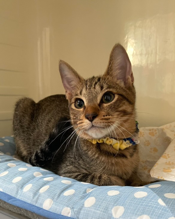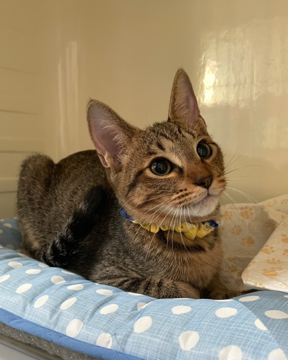 経緯 | 物置小屋に野良猫が子猫を産みました。母猫は不妊手術をしてリリース。子猫の里親探しをすることにしました。 保護日:R7.6月30日 |