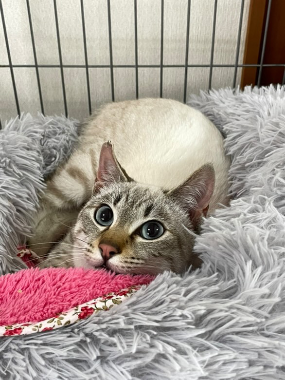 状態 | 健康診断 ☑ R6.12/12 検便 ☑ R6.12/12 ノミダニ駆除 ☑ R7.10/10 ワクチン接種 1回目 ☑・2回目 ☑(5種) R7.10/10 血液検査 保護時 ☑・2ヶ月後 ☑(エイズ白血病共に陰性) R7.10/10 去勢手術 ☑ R7.1/29 その他:トイレ躾済 |