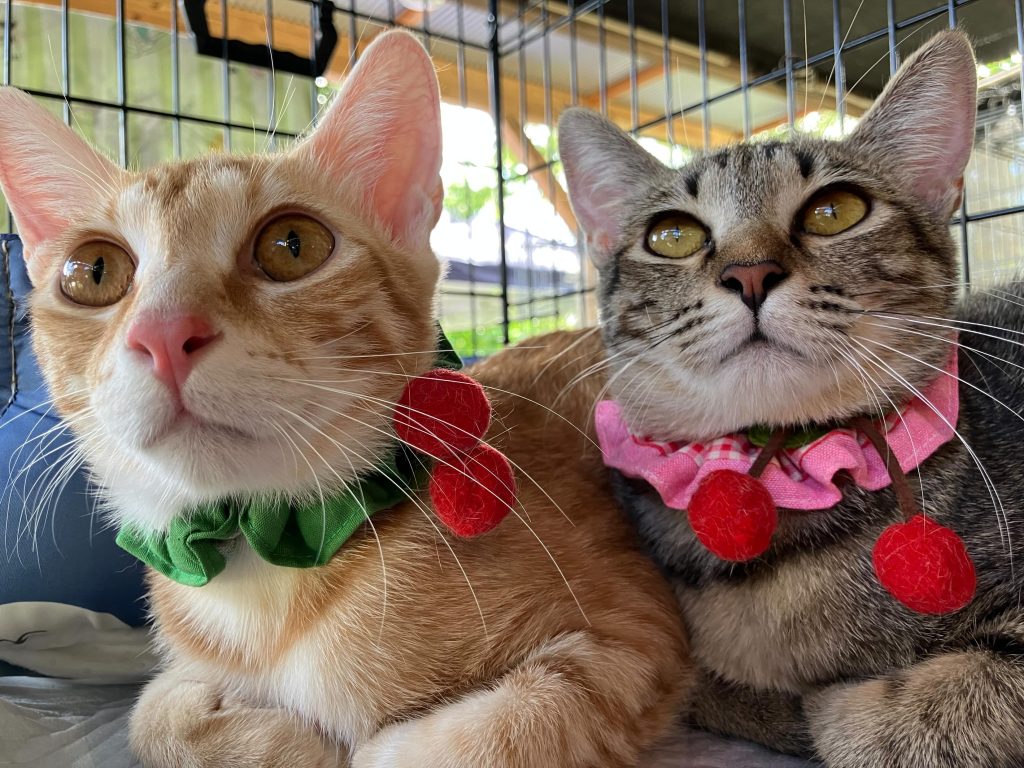 性格 | 元気いっぱいの茶トラの子猫です。 しっぽの先が曲がっているのが特徴です。ご飯もたくさん食べます。 ジロー♂、ハル♀は兄妹です。 |