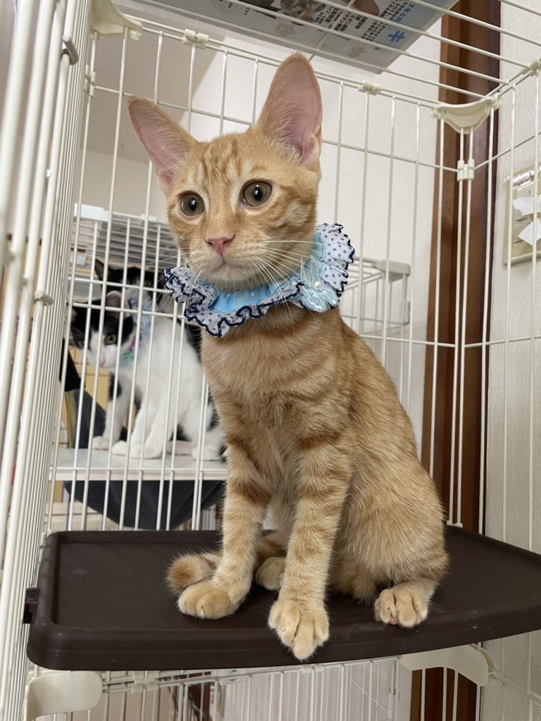 状態 | 健康診断 ☑ 検便 ☑ ノミダニ駆除 ☑ ワクチン接種 1回目 ☑・2回目 ☑(3種) 血液検査 保護時 □・2ヶ月後 ☑(エイズ白血病共に陰性)8/9 去勢手術 □ その他: |