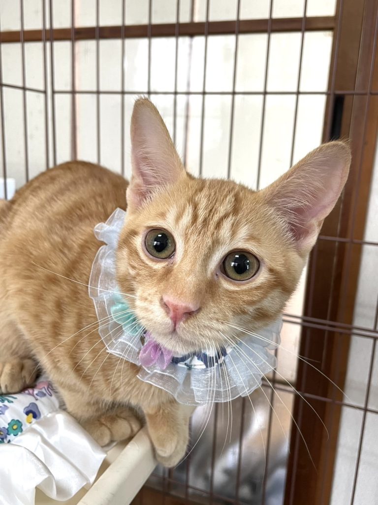 経緯 | 自宅敷地内にいる猫を手術したいという相談を受け母猫を保護したところ、4匹の小さな子猫がいました。母猫は不妊手術をしましたが、前脚を骨折していてサポート募金を募り手術をする事になりました。その為長期の隔離治療が必要になり、子猫たちは保護しました。 サポート募金サビママの子供たちです。 保護日:R7.6月12日 |