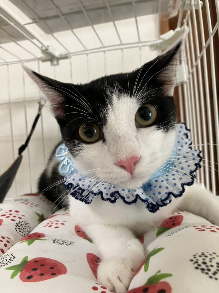 状態 | 健康診断 ☑ 検便 ☑ ノミダニ駆除 ☑ ワクチン接種 1回目 ☑・2回目 ☑(3種) 血液検査 保護時 □・2ヶ月後 ☑(エイズ白血病共に陰性) 去勢手術 ☑ その他: |