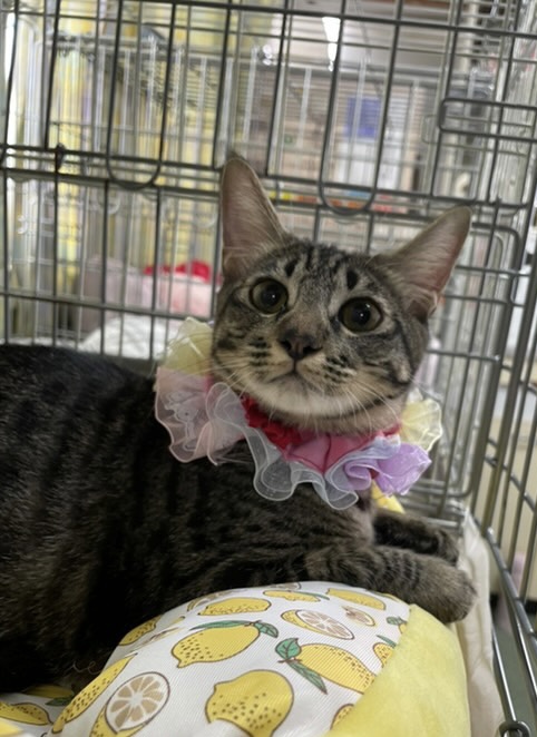 経緯 | 昨年子猫を保護し、母猫を不妊手術後リリースした現場に半年ぶりに見に行くと、また他の母猫が子猫3匹を草むらで授乳しているのを見つけました。子猫3匹を保護し、母猫と昨年秋生まれのメス猫の不妊手術をし、リリースしました。 保護日:R7.5月31日 |