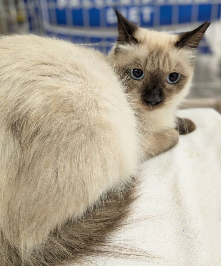 | 状態 | 健康診断 ☑ 検便 ☑ ノミダニ駆除 ☑ ワクチン接種 1回目 ☑・2回目 □(5種) 血液検査 保護時 ☑・2ヶ月後 □(エイズ陽性白血病陰性) 不妊手術 ☑ その他: |