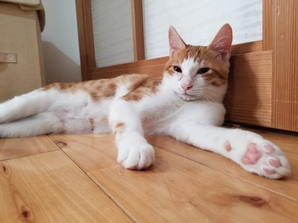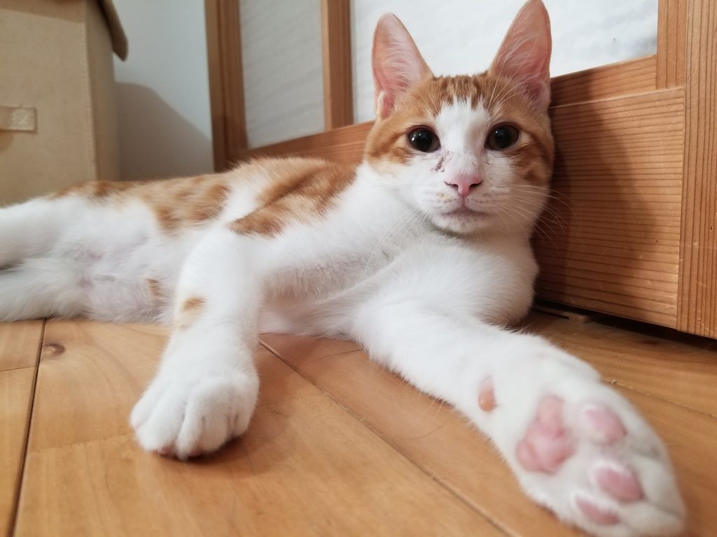 | 性格 | 遊びたいさかりの元気な男の子。他の猫にも臆さず行けるので、上手く共生できる性格です。 抱っこして撫でて貰うことも好きだし、どこを触られても嫌がりません ゴロゴロが大きくて、人にくっついて寝るのも大好きな、とっても可愛い子です。 |