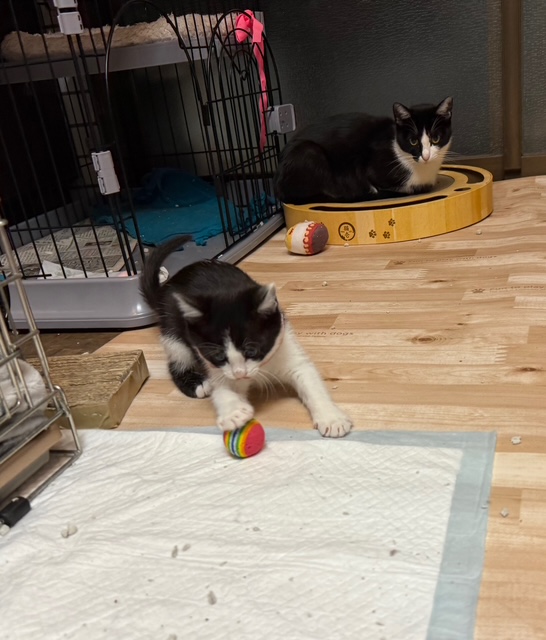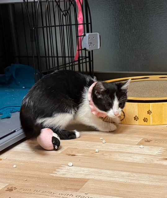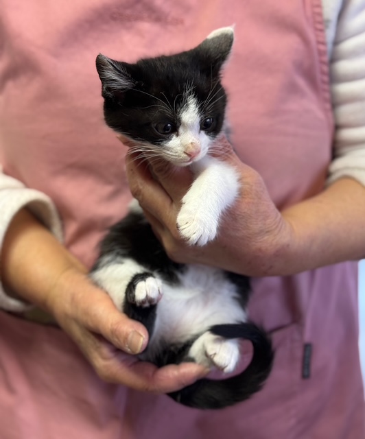 | 経緯 | 2025年10月4日に敷地内に出入りしていたので餌を置いてやっていた野良猫3匹のうち1匹が餌やり場の物置で出産、移動の際、最後に残っていた1匹を発見。動物病院に相談しながら待っていたら母猫が戻って来たので、子猫を渡すと姿を消しましたが、10月17日に餌置き場に目が開いたばかりの子猫4匹を連れ戻りました。周辺には交通量が多く危険なので、母子5匹を餌置き場横の母が施設に入り空き家状態の家に引き込み保護しました。里親さんが決まっている子以外の3匹の里親さんを募集します。 誕生日:R7.10月4日 保護日:R7.10月21日 |