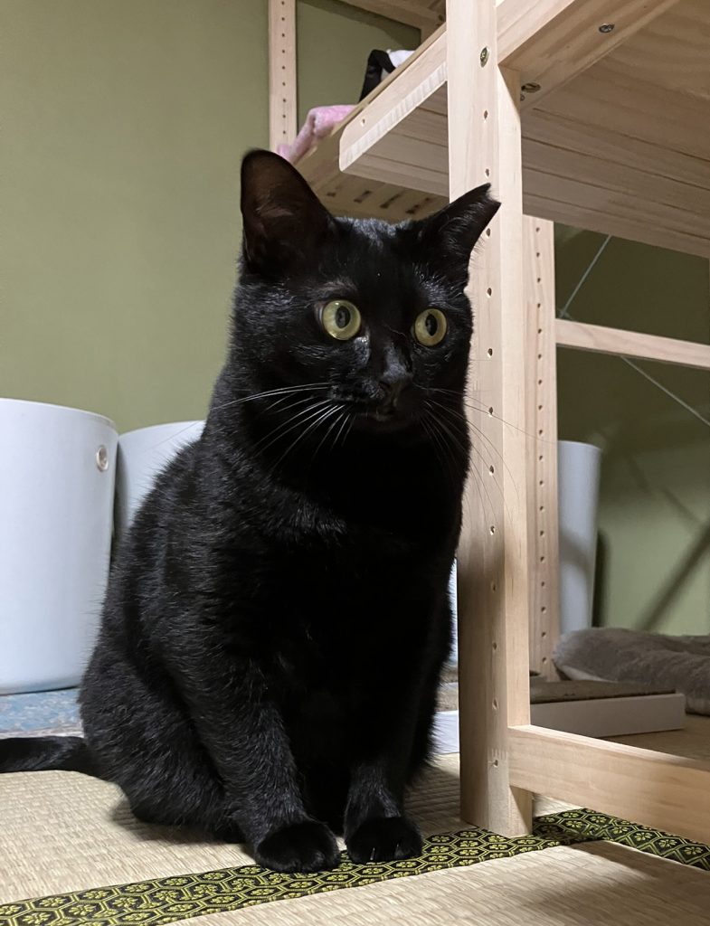 | 性格 | 食べることが大好きなツンデレ猫です。 まだ警戒心があるので、近づいて甘えることはありませんが、撫でて欲しい素振りは見せます。撫でるとゴロゴロ言って、気持ちよさそうにします。 現在は、保護猫専用部屋にいて、りょうこにかけられる時間が限られているので、人馴れがなかなか進みません。家族と一緒に生活できるお家に行けば、甘えん坊になると思います。 甘えん坊のポテンシャルを持ち合わせている、可愛い童顔黒猫女子です。 普段の様子をご覧ください→(インスタグラム) |
