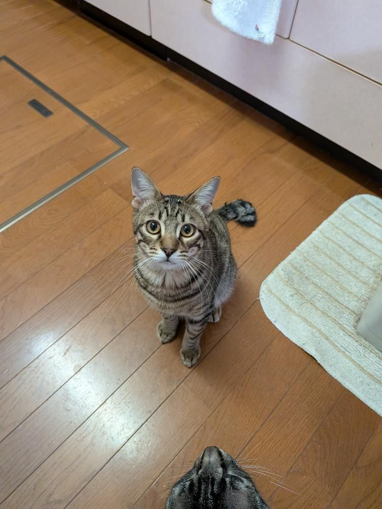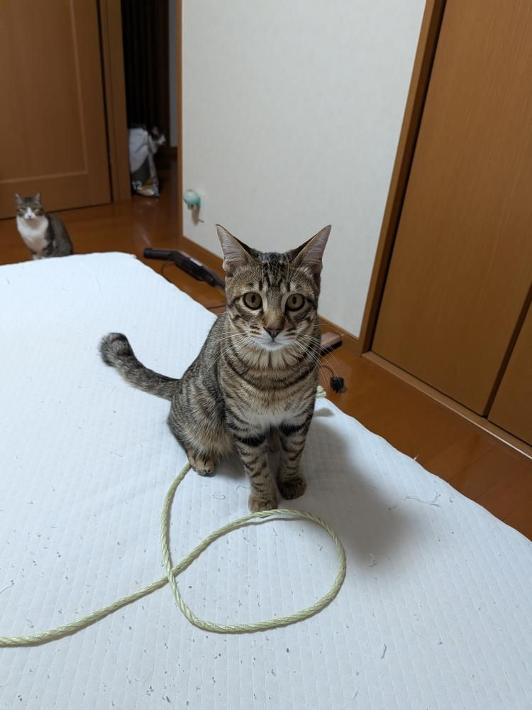 | 性格 | 話しかけると、よく返事をしてくれます。 日中は先住猫と適度な距離を取りながら、お気に入りの場所で寝たりくつろいだりしています。夜になると私の布団に入り、喉をゴロゴロ鳴らしながら、左耳タブをフミフミしながら、チュウチュウと30分くらい吸って、満足したら布団に潜り込んで寝ています。 負けん気が強く、色んな事に興味があり、人が大好きです。紐やじゃらしで遊ぶ事も大好きです。 普段の様子をご覧ください→(インスタグラム) |