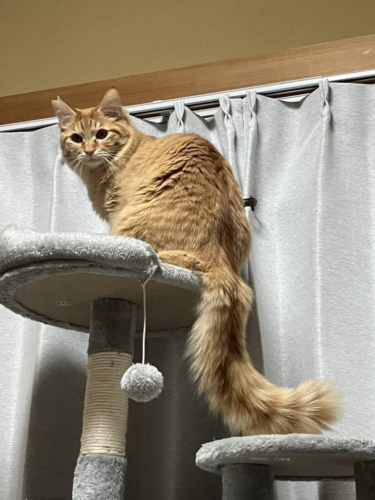 | 性格 | ふわふわの大柄の身体でおっとり、ゆったりした性格。 ゆさゆさと毛をなびかせながら、ドタドタ走る姿は見てるだけで和みます。 人とも猫ともいい距離を保って生活しています。 初めて猫を飼われる方でも落ち着きもあるのでお世話しやすい子です。 普段の様子をご覧ください→(インスタグラム) |