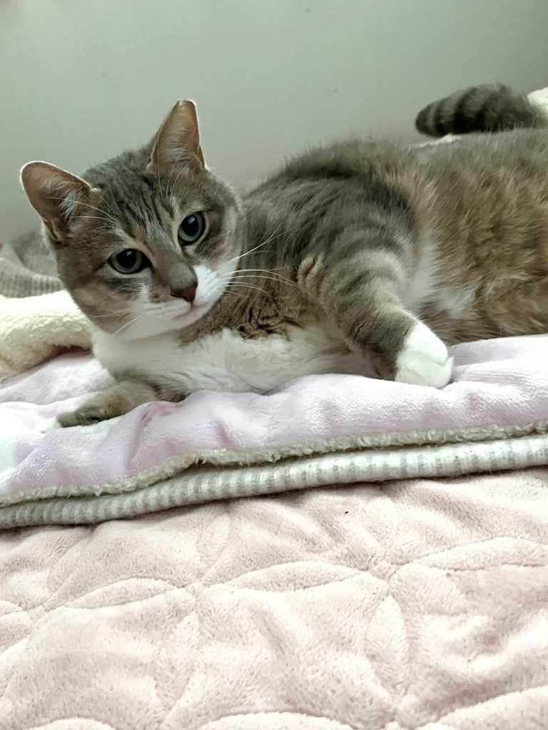| 状態 | 健康診断 ☑ R5.2/13 検便 ☑ R6.12/16 ノミダニ駆除 ☑ R6.12/16エビクト ワクチン接種 1回目 ☑ ・2回目 ☑ ・3回目 ☑ (3種) 最新接種日:R8.1/7(3種) 血液検査 保護時 ☑・2ヶ月後 ☑(エイズ白血病共に陰性)R6.1/6 ※保護後1ヶ月で遺伝子検査 不妊手術 ☑ R5.2/13 その他:トイレ躾済 |